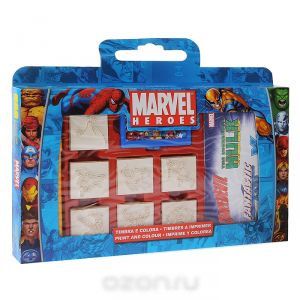 Набор штампов 'Супергерои' включает в себя семь штампов с изображениями супергероев из комиксов Marvel. Приложив штамп к штемпельной подушке, пропитанной нетоксичными чернилами, ребенок сможет украсить рисунки, поздравительные открытки, рамочки, тетради, альбомы для фотографий и многое другое. Штампы снабжены деревянными держателями, благодаря чему руки малыша останутся чистыми. В комплект со штампами входят три фломастера желтого, голубого и красного цветов, которыми ребенок сможет раскрасить изображения или дополнить их, а также блокнот.