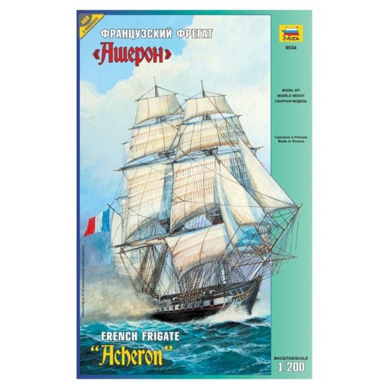 Модель легендарного французского фрегата эпохи наполеоновских войн 'Ашерон', прославившегося активными действиями против английских китобоев и каботажных судов возле берегов Южной Америки и ставшим настоящим кошмаром для британских моряков. Мощное парусное вооружение делало корабль практически неуловимым для кораблей противника, а бортовой залп орудий фрегата буквально сметал все с палубы вражеских кораблей.