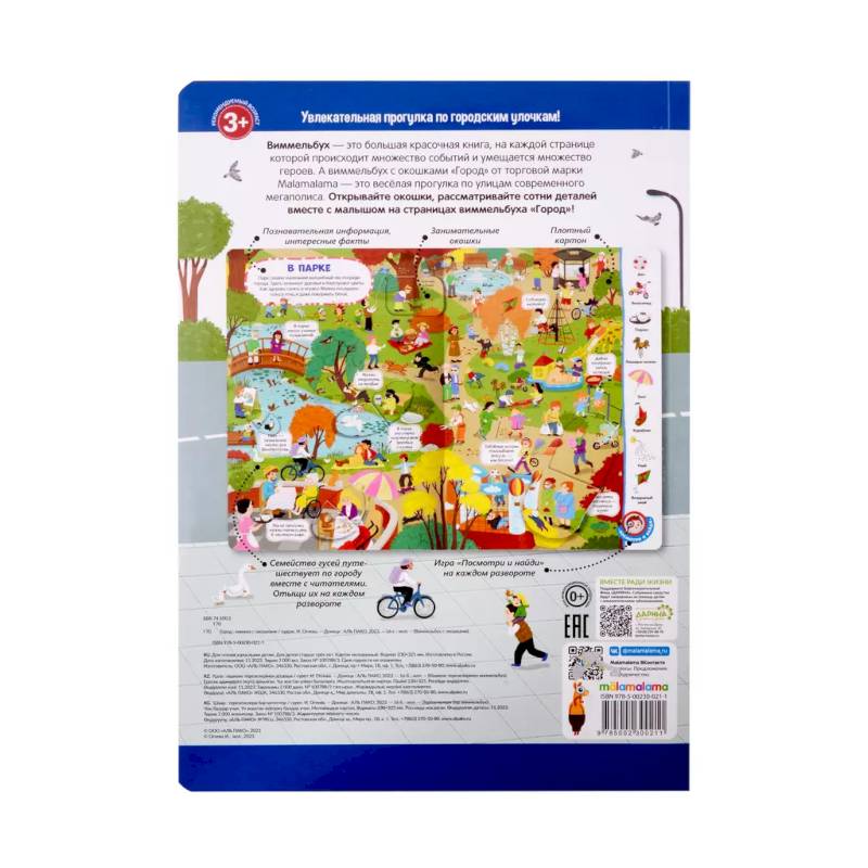 Виммельбух с окошками «Город» — это большая красочная книга-картинка, на страницах которой малыш сможет отправиться в настоящее путешествие по людному мегаполису. Окошки с интересными фактами дополняют сюжет иллюстраций весёлыми и необычными деталями. На каждой странице вас будет сопровождать семейство гусей, которые тоже живут в этом городе и превращают обычную прогулку по парку в весёлое приключение. Окошки имеют удобную выемку для детских пальчиков, чтобы ребёнку было удобно открывать их. Книга выполнена из плотного картона с ламинированной обложкой. Листайте книгу вместе с малышом, открывайте окошки и отправляйтесь на прогулку в чудесном настроении!