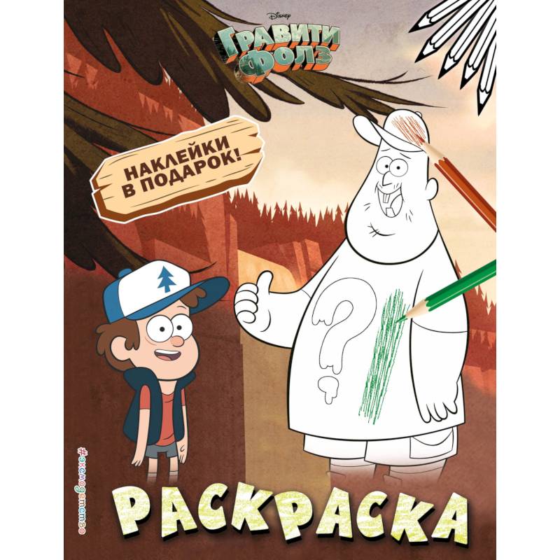 Здесь тебя ждут Диппер, Мэйбл, Зус и другие герои любимого мультсериала Disney 'Гравити Фолз'. Скорее хватай карандаши и раскрашивай картинки, а в награду получай потрясающие наклейки!