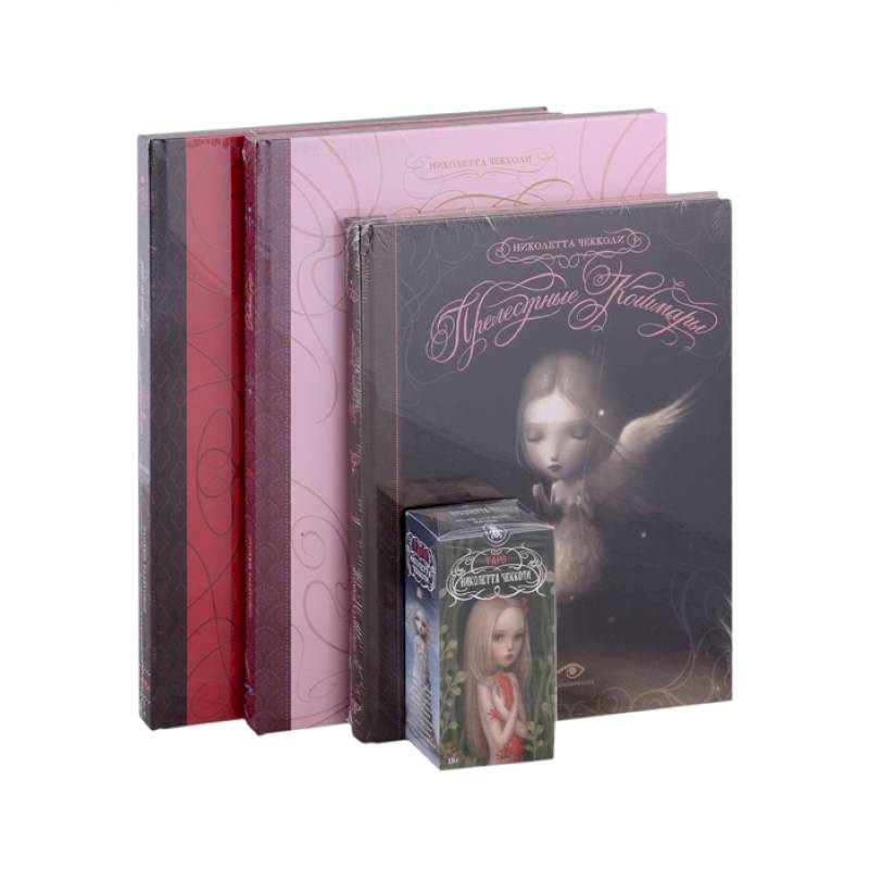 В комплект входят три арт-бука, посвященные творчеству Николетты Чекколи ('Прелестные кошмары', 'Дневные грезы' и 'Поиграй со мной') и колода карт Таро Николетты Чекколи (78 карт размером 66 х 120 мм + инструкция).