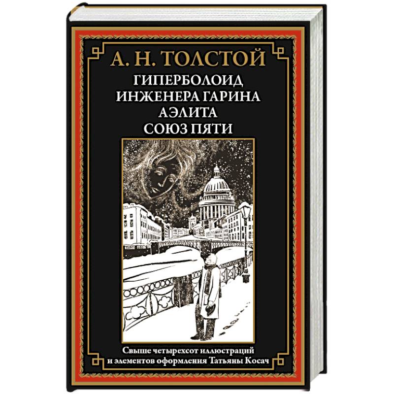 В данном издании представлены фантастические произведения Алексея Толстого. «Гиперболоид инженера Гарина» (1927) повествует о русском ученом, который стремится достичь грандиозных целей при помощи невообразимо опасного изобретения. «Аэлита» (1923) поведает читателю о космическом путешествии, об удивительной инопланетной цивилизации и о любви землянина и дочери властелина Марса. В рассказе «Союз пяти» (1925) сообщество жадных до власти магнатов намеревается уничтожить Луну, чтобы захватить мир, однако вскоре сталкивается с непредвиденными последствиями такого решения. Эти сочинения, первоначально воспринятые современниками критически, сегодня считаются классикой советской научной фантастики. Тексты набраны по первым публикациям, появившимся в журнале «Красная новь». Иллюстрации к ним для данного сборника выполнила художница Татьяна Косач. Ее иконописные и графические работы можно встретить в частных коллекциях любителей искусства разных стран мира. В серии «Библиотека мировой литературы» её рисунки неоднократно украшали издания произведений отечественных и зарубежных классиков.
