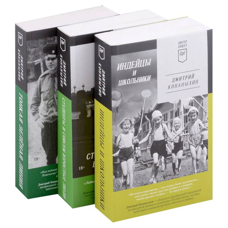 Трилогия Дмитрия Конаныхина 'Индейцы и школьники', 'Студенты и совсем взрослые люди' и 'Тонкая зелёная линия' - это продолжение романа 'Деды и прадеды', получившего Горьковскую литературную премию 2016 года в номинации 'За связь поколений и развитие традиций русского эпического романа'. Начало трилогии - роман 'Индейцы и школьники' о послевоенных забавах, о поведении детей и их отношении к родным и сверстникам. Яркие сны, первая любовь, школьные баталии, сбитые коленки и буйные игры - образ счастливого детства, тогда как битвы 'улица на улицу', блатные повадки, смертельная вражда - атрибуты непростого времени начала 50-х годов. Читатель глазами 'индейцев' и школьников поглощен сюжетом, переживает и проживает жизнь героев книги.
