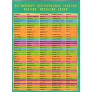 Плакат-подсказка «Английские неправильные глаголы» – незаменимый помощник в изучении английского языка. В таблице представлены 80 самых употребительных неправильных глаголов. К каждому глаголу даются три формы, а также ing-форма и перевод. Все формы глаголов снабжены международной фонетической транскрипцией. Глаголы с похожим способом образования форм выделены одинаковыми цветами.