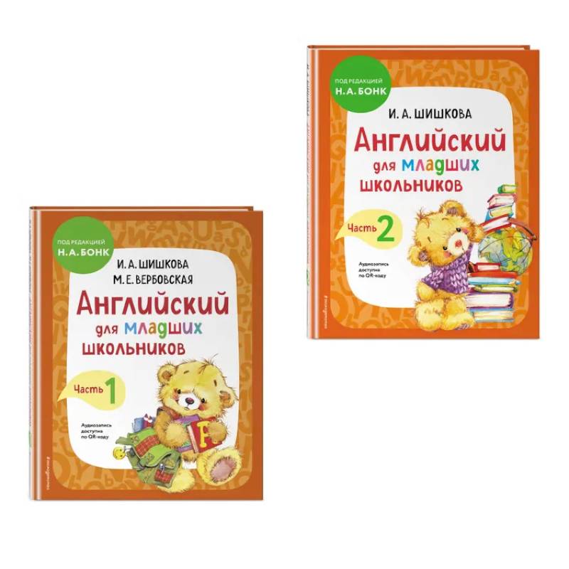 В комплект по английскому языку автора И. А. Шишковой входят книги «Английский для младших школьников. Учебник. Часть 1» и «Английский для младших школьников. Учебник. Часть 2».