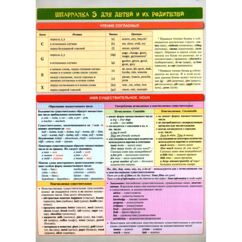 Представляем вашему вниманию шпаргалку по английскому языку, формат А4, ламинированную, для детей и родителей.