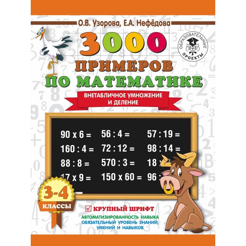 В пособии собраны 3000 новых примеров по математике по одной из базовых тем - 'Внетабличное умножение и деление'. Как и любая другая тема, она требует внимательного осмысления и прочного закрепления. Особенностью этого издания является крупный шрифт.