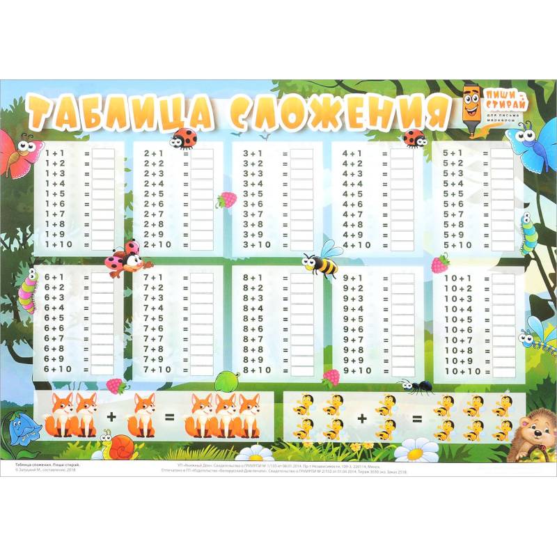 Таблица вычитания. Таблица умножения....