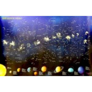 Перед вами необычная карта звёздного неба. Днём с ней можно исследовать очертания созвездий и названия ярчайших звёзд, а ночью же - просто  наслаждаться звёздным сиянием. На карте отображены планеты по мере удаленности от Солнца, и изложена информация с краткими характеристиками каждой из них.