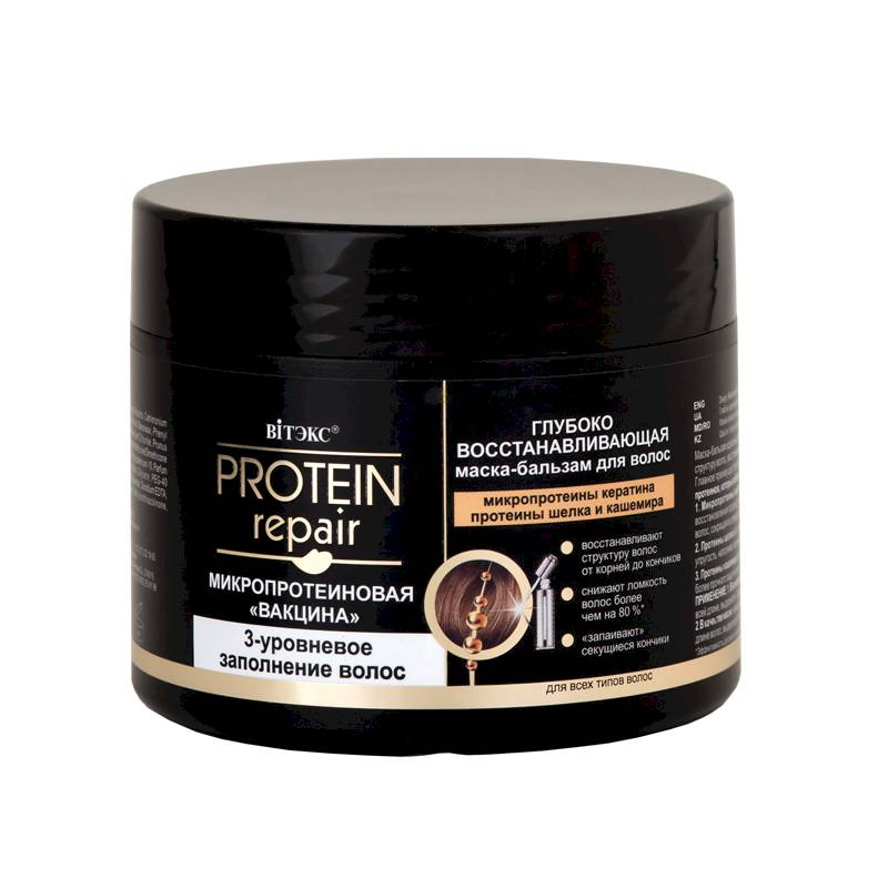 МИКРОПРОТЕИНОВАЯ «ВАКЦИНА» глубоко питает и уплотняет структуру волос, восстанавливая и защищая их на 3-х уровнях, сокращает ломкость волос и «запаивает» секущиеся кончики.