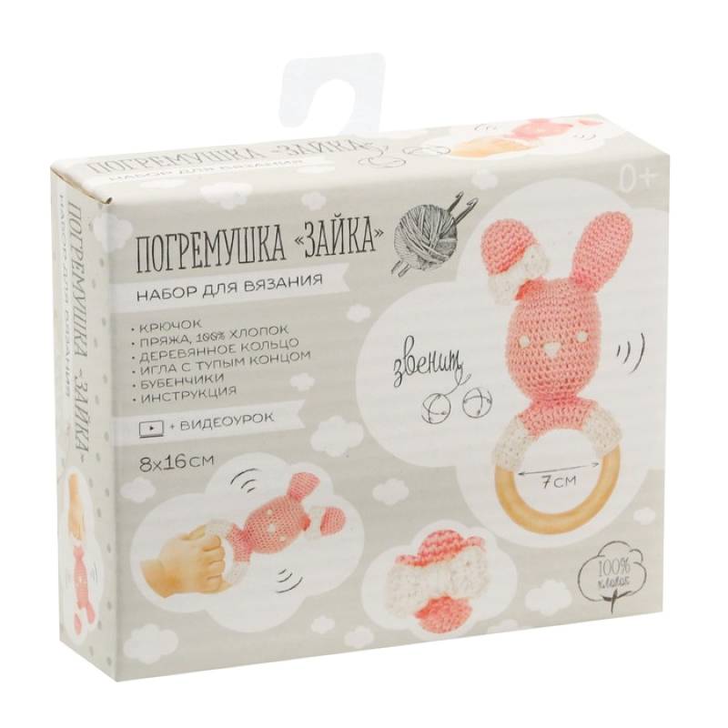 —Погремушка «Зайка» розовая, набор для вязания