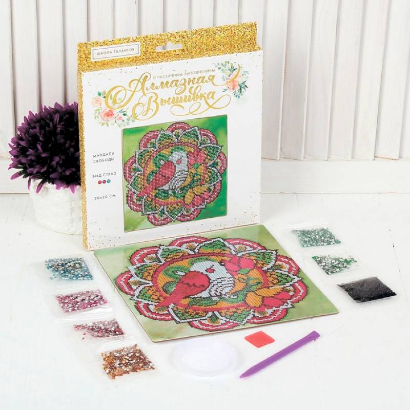 Алмазная вышивка мандала 'Птичка' с частичным заполнением, 20x20 см