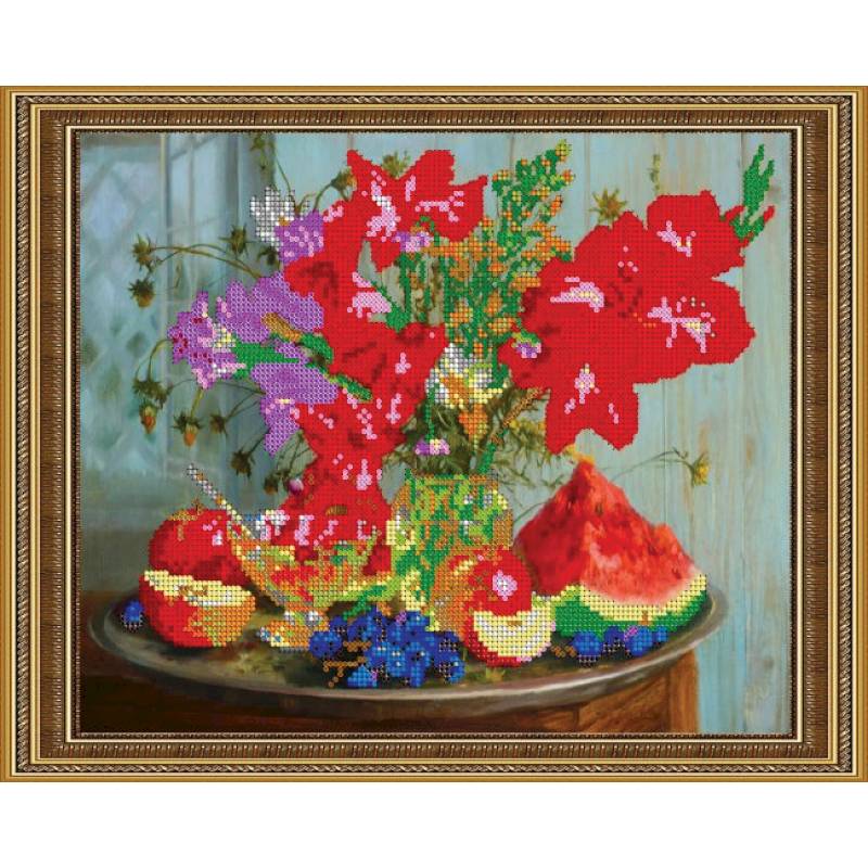 —'Аромат цветов' 30x24см набор на атласе для вышивания чешским бисером 'Вышивочка' в коробке ВЛ-048П