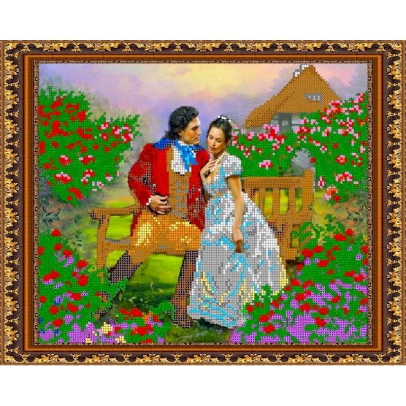 —«Светлица» набор для вышивания бисером №328 «Пара в саду» бисер Чехия 30x24 см