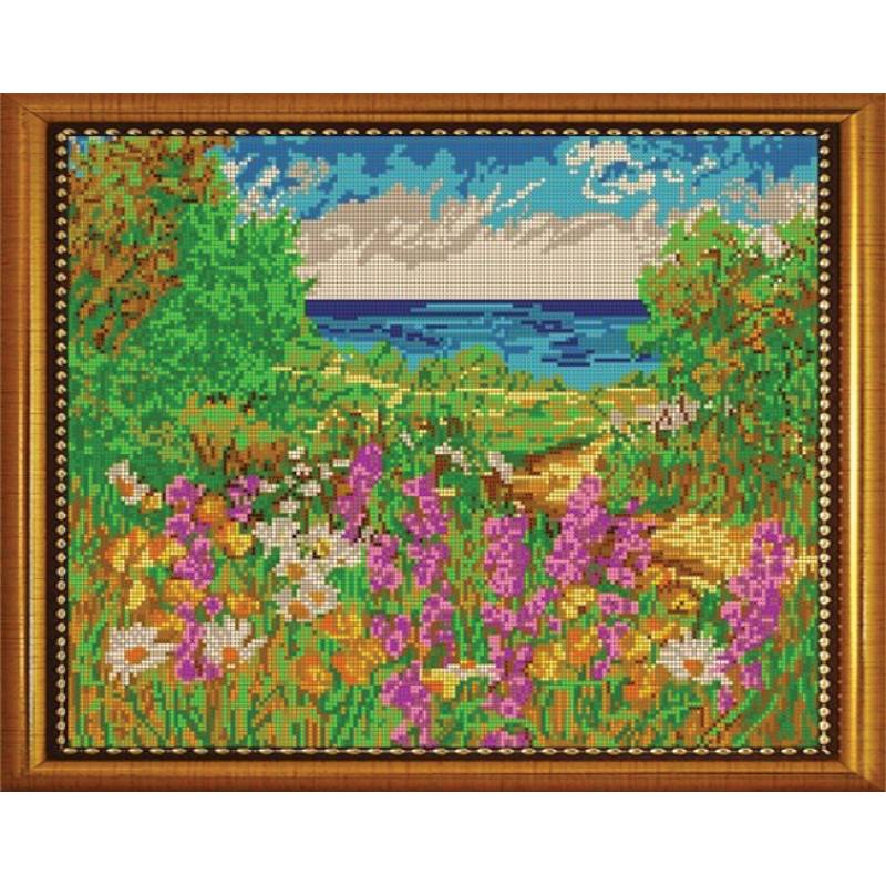 ВЛ-030П 'Русское поле' 38x30см набор на атласе для вышивания чешским бисером 'Вышивочка'