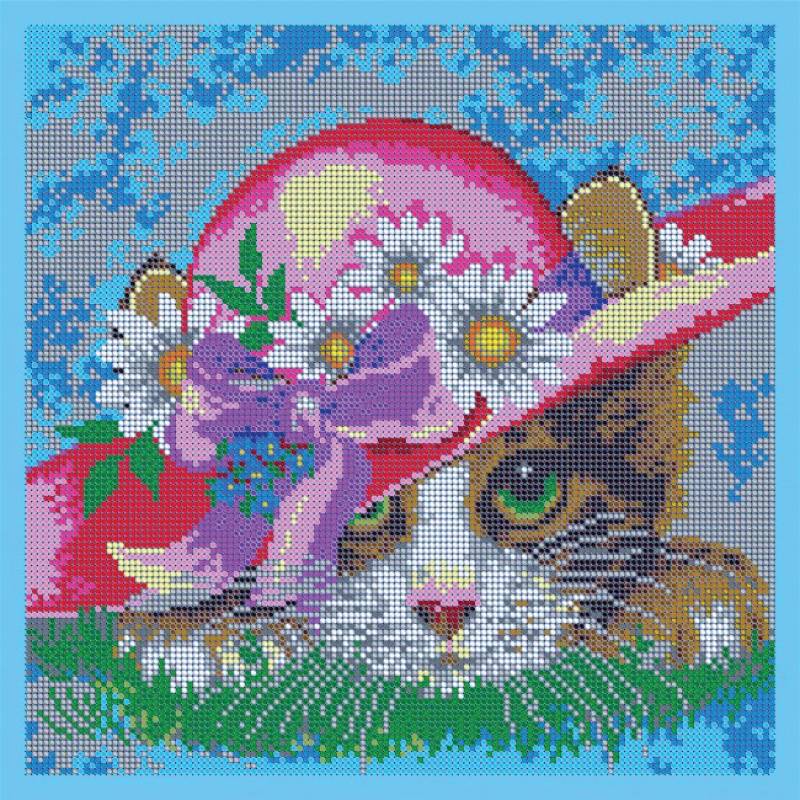 —ВЛ-065П 'Котенок в шляпе' 27x27 см набор для вышивания чешским бисером 'Вышивочка'