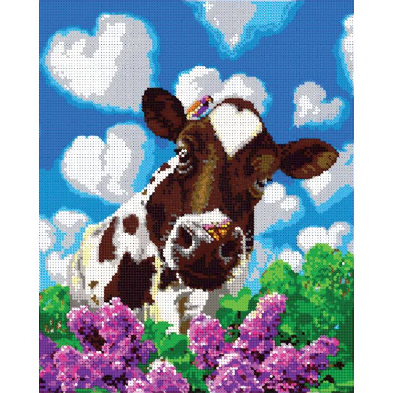—ВЛ-102П 'Бурёнка' 24x30см набор на атласе для вышивания чешским бисером 'Вышивочка' в коробке