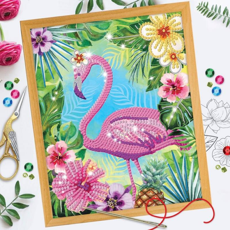 Вышивка бисером и пайетками 'Фламинго', 28 x 35 см